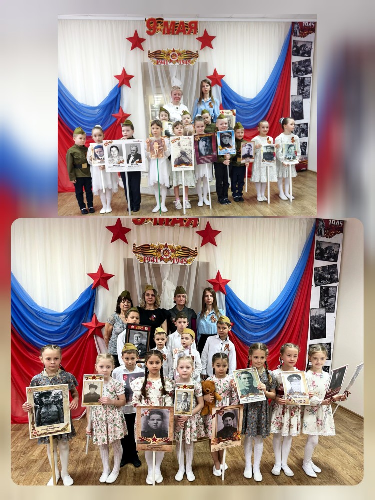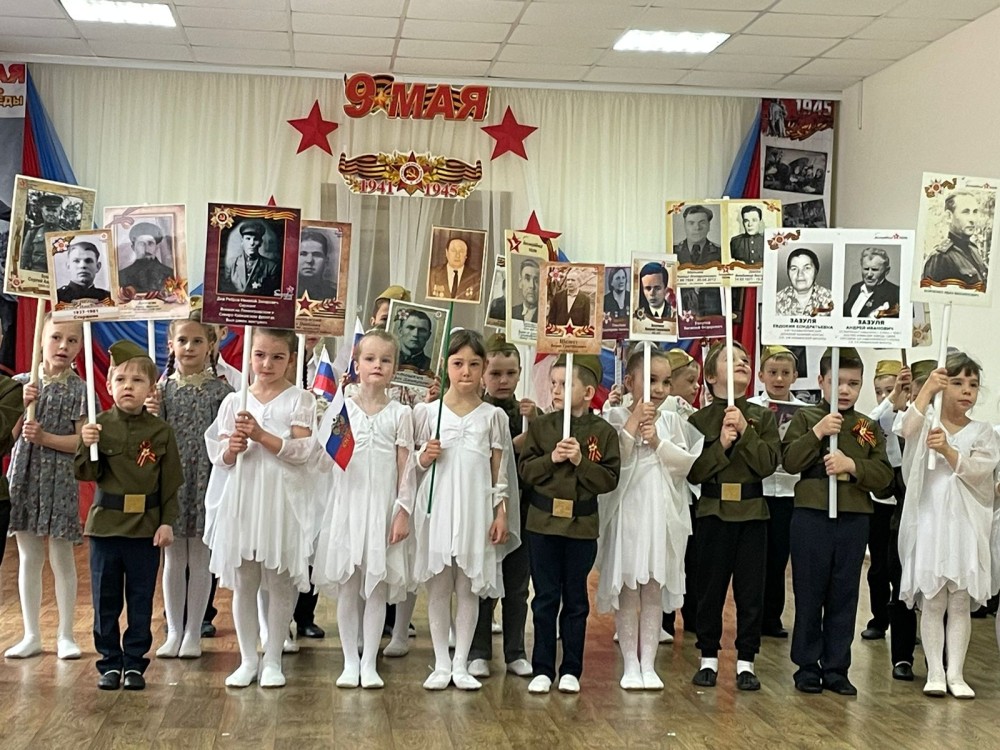 Педагоги и воспитанники детского сада присоединились к акции "Бессмертный полк". Ребята совершили круг почёта с портретами своих прадедов.